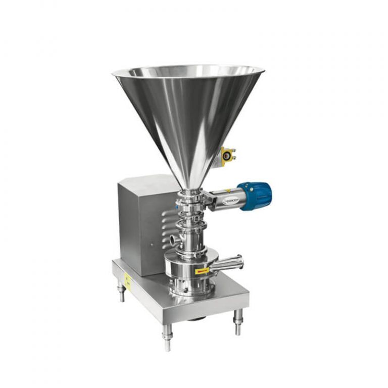 Санитарные смесители для порошков и жидкостей используются для смешивания сухих порошков с жидкостями. Изготовлены из гигиеничной нержавеющей стали, поверхность деталей тщательно отполирована, механическое уплотнение соответствует стандарту FDA. Обладают производительностью 9000 кг/ч сухих порошков и бункером для жидкости объемом 65 литров. Широко используются в молочной, пищевой, фармацевтической, косметической и химической промышленности.